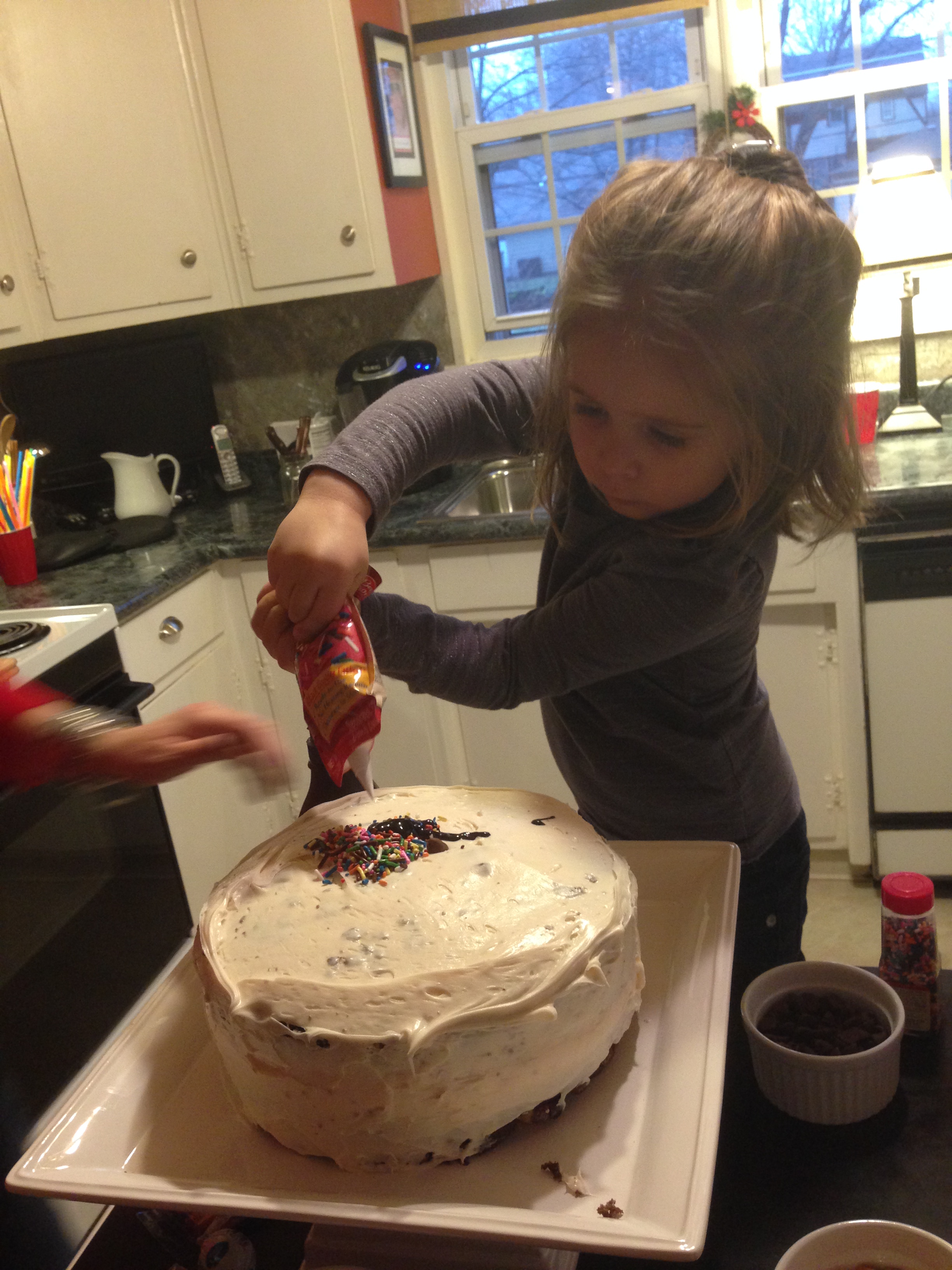 Wednesday, our Christmas Eve celebration with Oma and Papa (John’s parents) included a Happy Birthday Jesus cake, decorated by our own little cake boss.