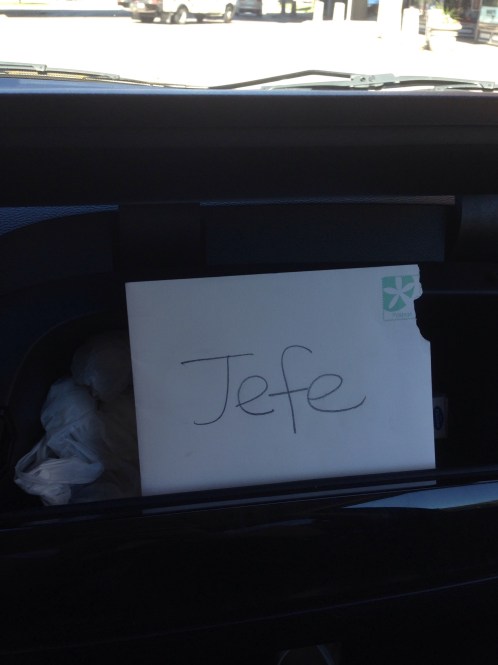 We have quite a few trips coming up in September and October and, given that is it now practically August and we hadn’t gone yet, he thought it was going to be an off year. This is why, when I told him that it was time to go shampoo the carpets at our townhouse and asked him to please let me drive so that he could call his mom, he didn’t bat an eye. Then, I asked him to open the glove box for some gum and he found this: