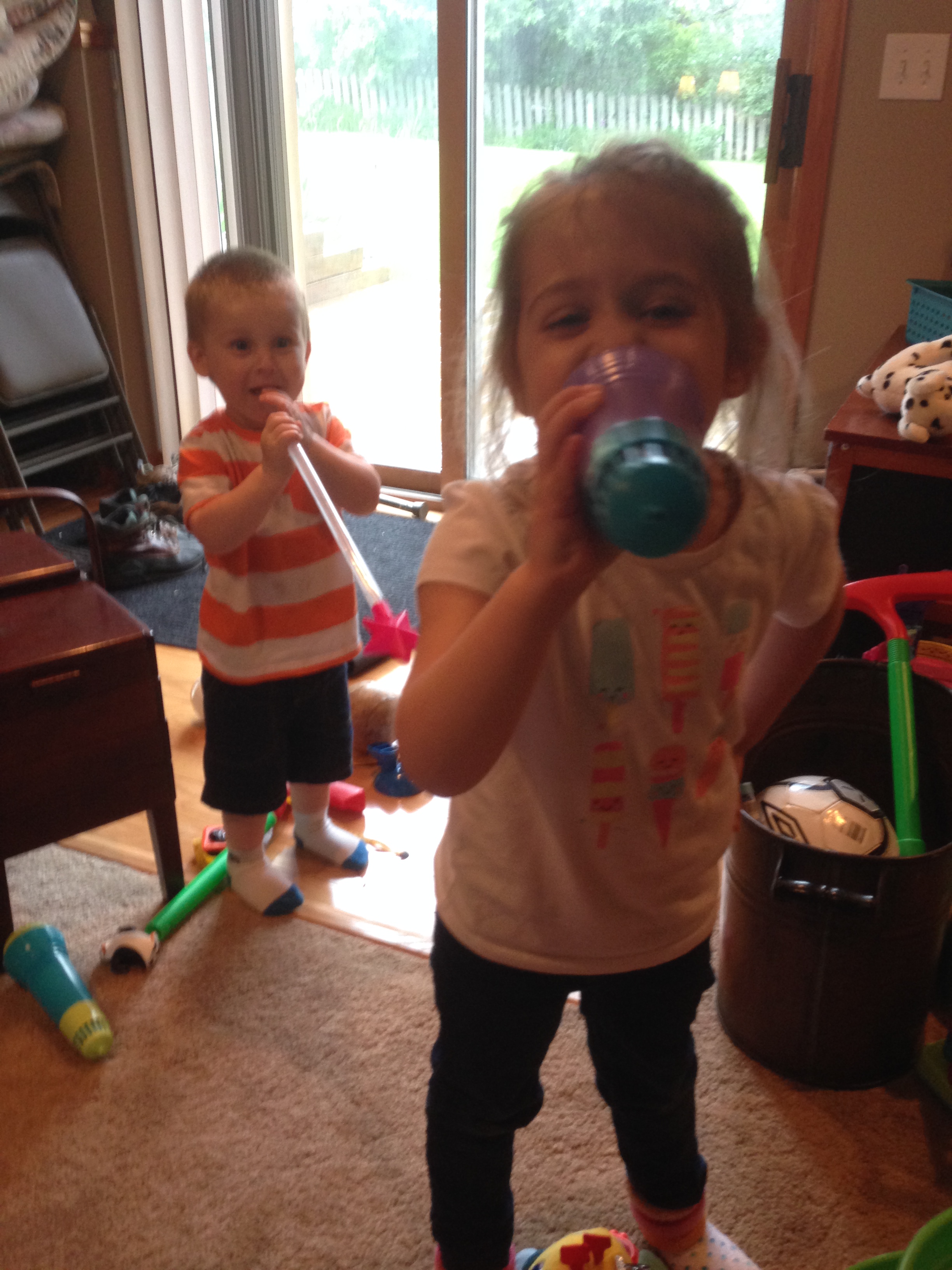 - Tessa unrolled an entire roll of toilet paper and threw it into the (running) shower.