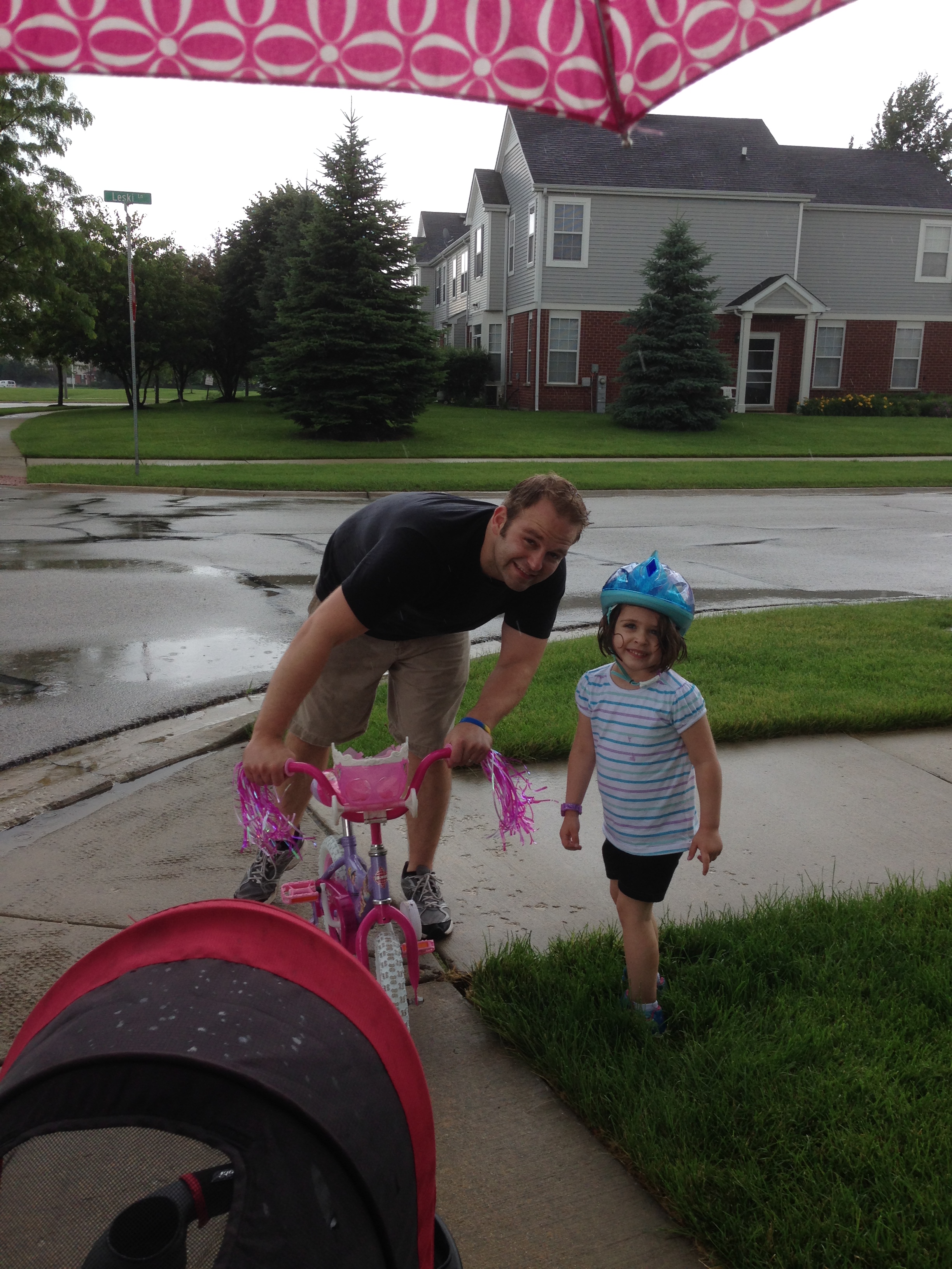 Normally, we keep a tall bar on the back of the walker that allows us to grab hold of our speed demon when she takes off. Today, we did not have it.