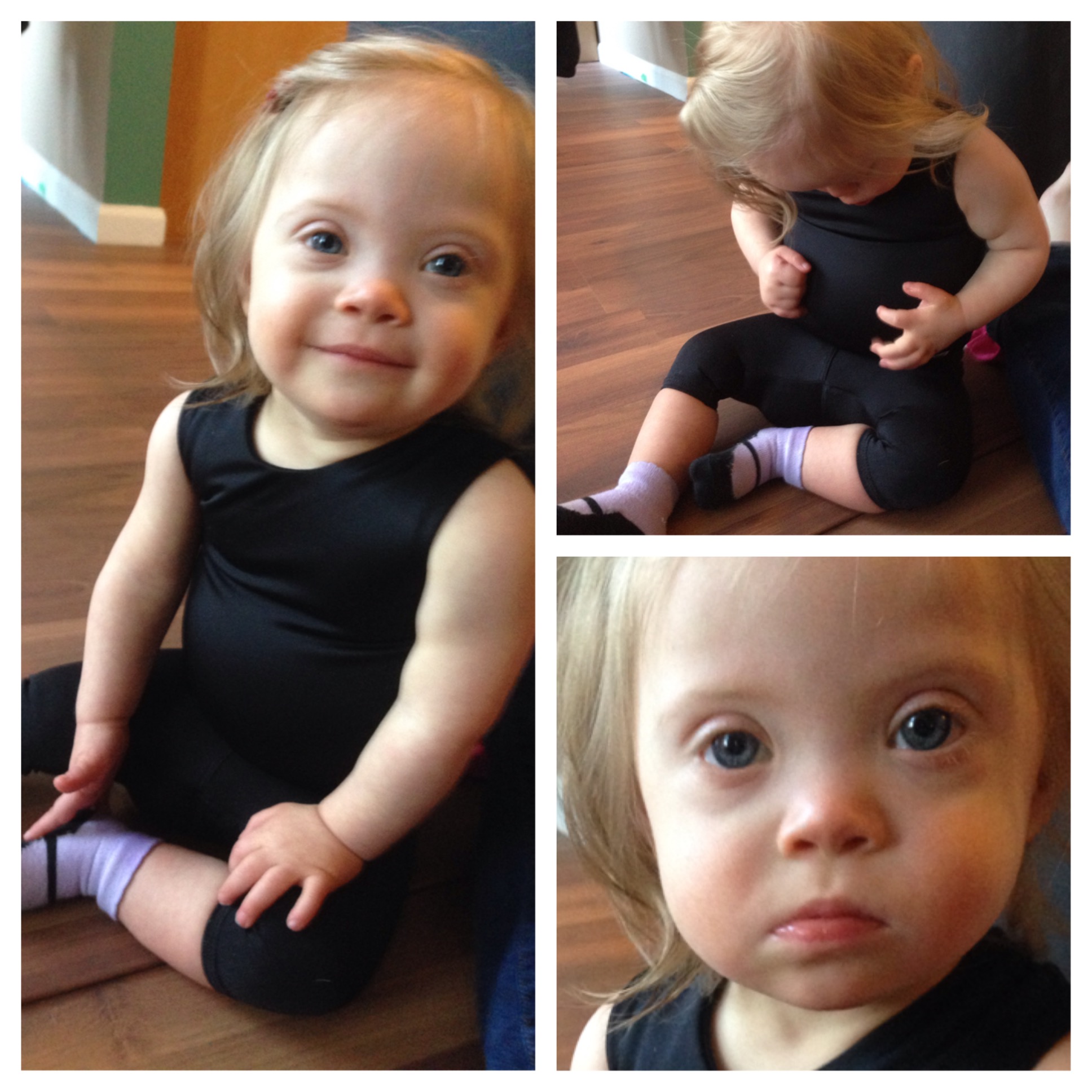 Tessa crawls like a champ. MAN is she fast!! One of her favorite things to do is to hold a block or other object in her hand and race across our new laminate floors. She LOVES the loud bang bang bang of her little hands as she moves. We are working on getting her to bear weight on her feet. She fights it most of the time, but today, when John was giving Ellie her bath, Tessa was so desperate to see what was happening in the tub that she pulled herself right up to her feet. SO exciting!!! We have her wearing a SPIO suit on a fairly regular basis (supposed to be every day… realistically, it’s like 2-3 days a week) to give her more body awareness and support.
